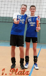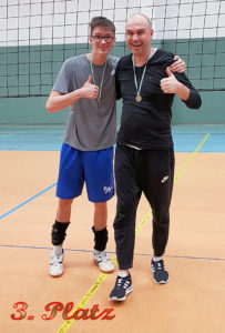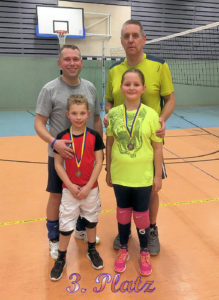 Den vereinsinternen Volleykids Pokal holten sich im Turnier „Jeder gegen Jeden“ Vincent und Papa, die auch im Finale gegen Tim und Athletiktrainer Thomas Thieme Sieger blieben. Platz 3 gewann Franz mit seinem Papa.